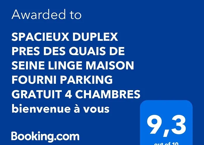 SPACIEUX DUPLEX PRES DES QUAIS DE SEINE LINGE MAISON FOURNI PARKING GRATUIT 4 CHAMBRES bienvenue à vous
